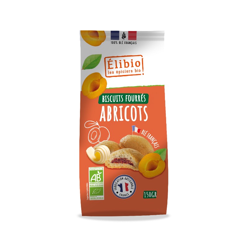Farine de BLE* 40%, fourrage abricot * 25% (sirop de blé*, purée d'abricot* 6,7% , sucre de canne*, jus de citron concentré*, pectine E440, arôme naturel d'abricot), sucre glace*, BEURRE* 10%, huile de tournesol*, poudre écrémé de LAIT*, poudre à lever (diphosphate disodique, carbonate acide de sodium, farine de BLE), sel. *produit issue de l'agriculture biologique