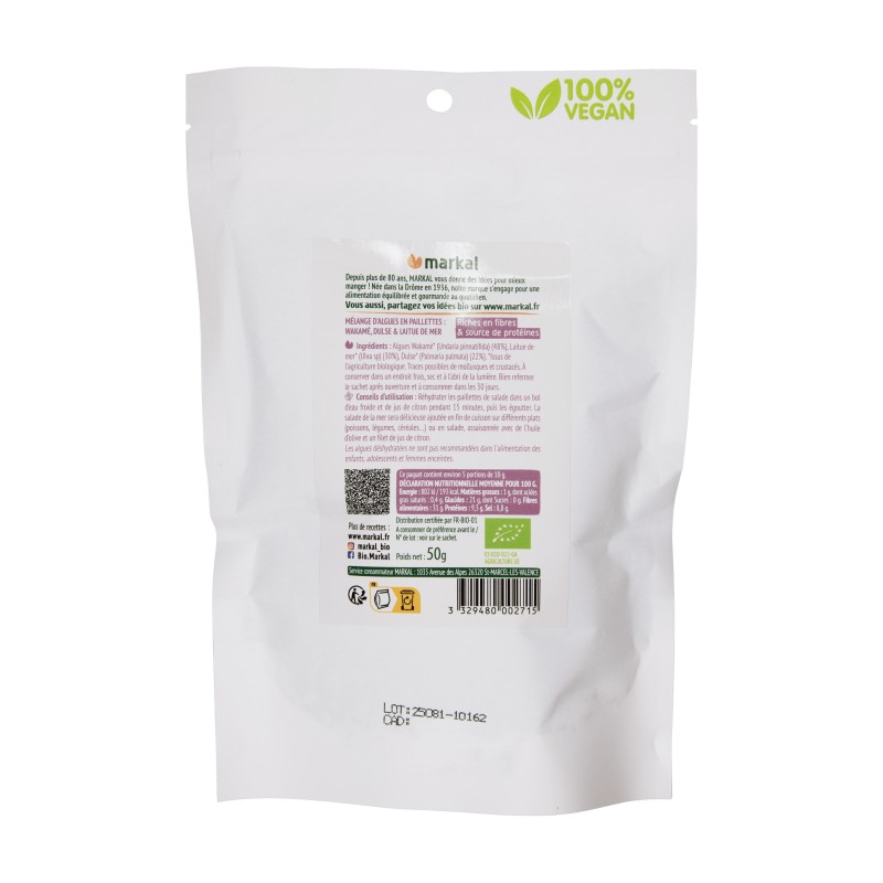 Algues Wakamé (Undaria pinnatifida) (40%), Dulse (Palmaria palmeta) (40%), Laitue