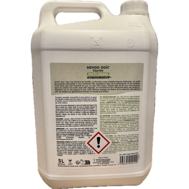 D'origine naturelle, écocertifié et sans parfum, le Savon Noir Prêt à l'Emploi Etamine du Lys s’emploie aussi bien dans la maison qu’au jardin. Il nettoie, nourrit et donne de l’éclat à toutes vos surfaces de la maison.
