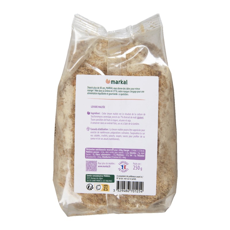 La levure maltée est riche en protéines végétales qui permettent de diversifier les apports en protéines. Elle est également riche en vitamines du groupe B.