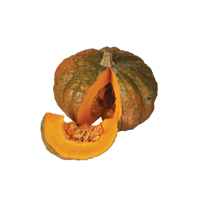 Courge à la peau verte et à la chair orangée, très semblable au potimarron classique.
